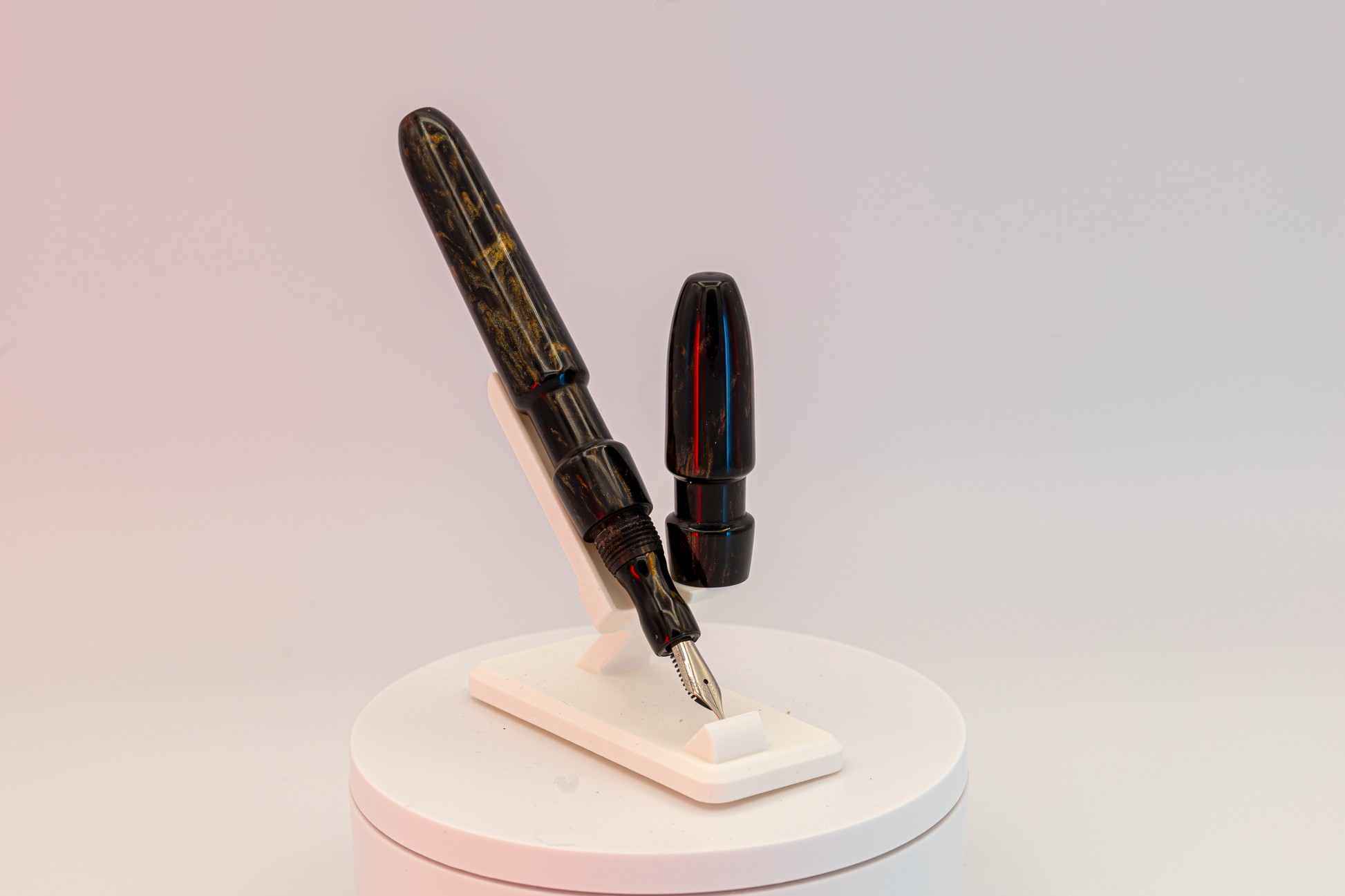 The product of finding a bubble and having to turn down past it in the section. The pen's overall shape reminds me of a skeletal finger, so...Dead Man's Finger! Probably a one-off, unless requested.