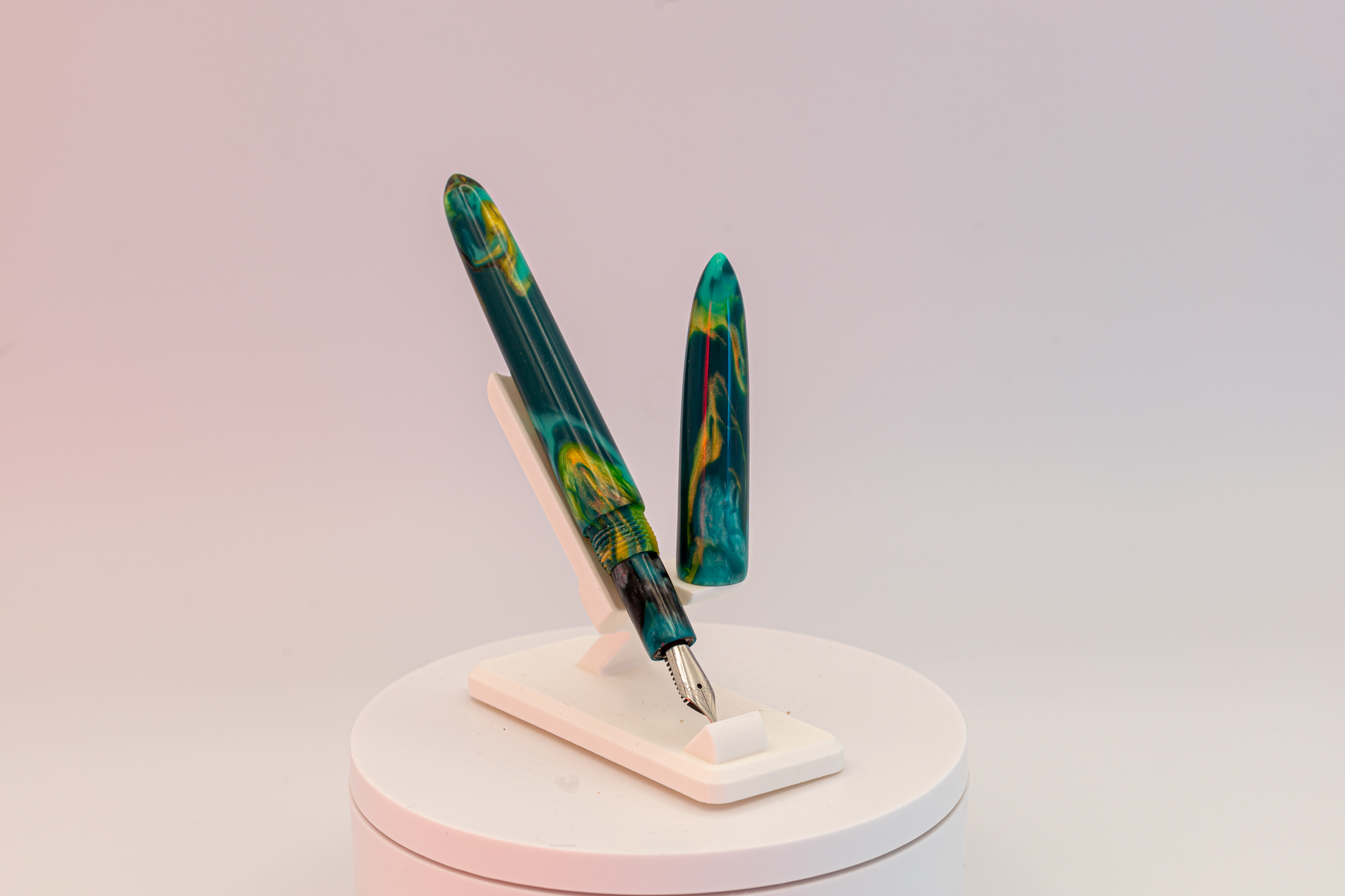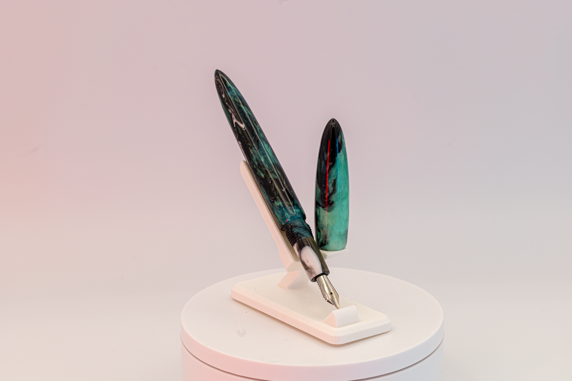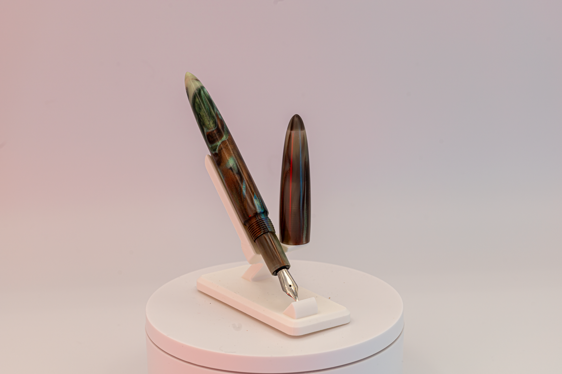 The Porcini is one of what I consider the "standard maker pen" models, smoothly tapering to a point on both the cap and barrel. Each comes with a #5 Jowo nib and a standard international converter.